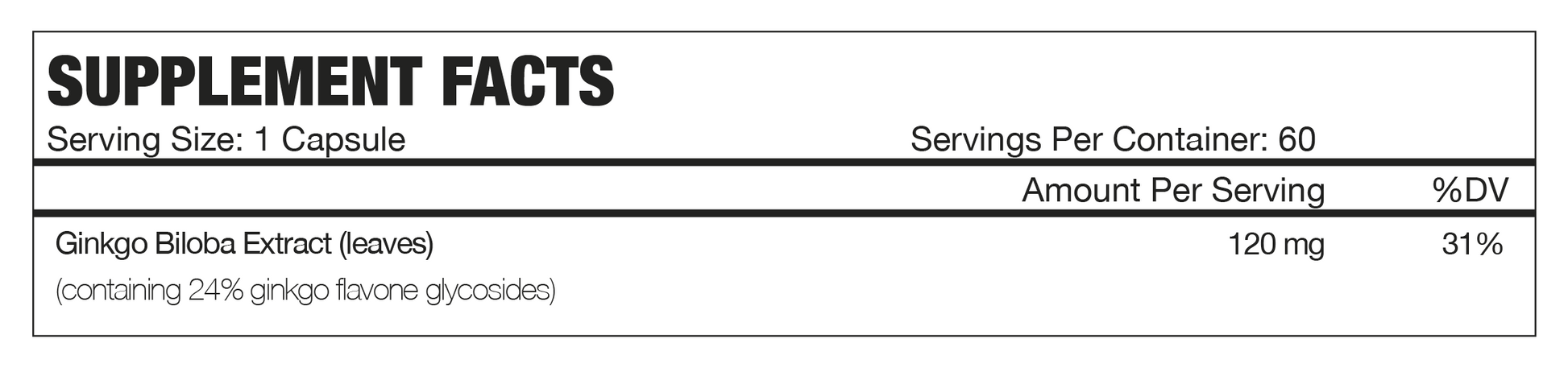 - Ginkgo Biloba Extract (leaves) 120 mg